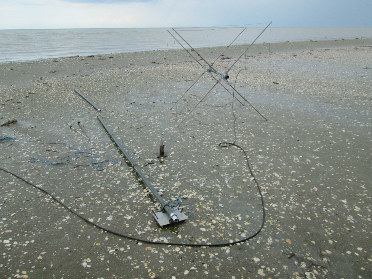По плану приготовил 5 мачт. Для их установки на песке пришлось изготовить больше 60-ти длинных кольев, подготовить подпятники под все мачты. Из них 2 мачты для Yagi 2м., а 2 el. QUAD на 6м. по плану должны были вращаться. На растяжки планировалось использовать около 200 метров веревок. Все это еще необходимо было тщательно упаковать и подготовить для транспортировки по воде.