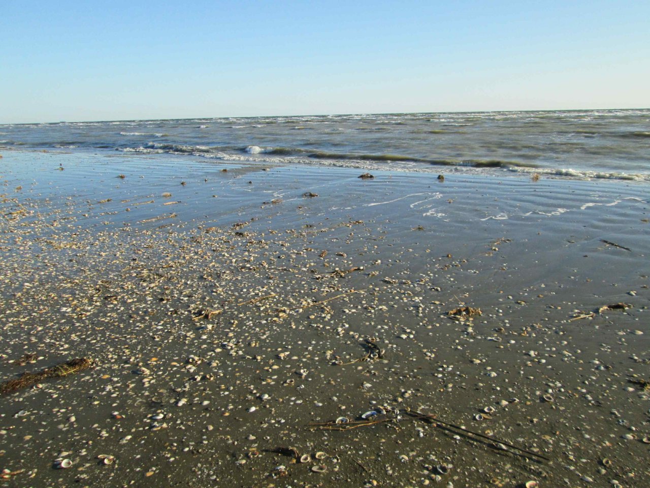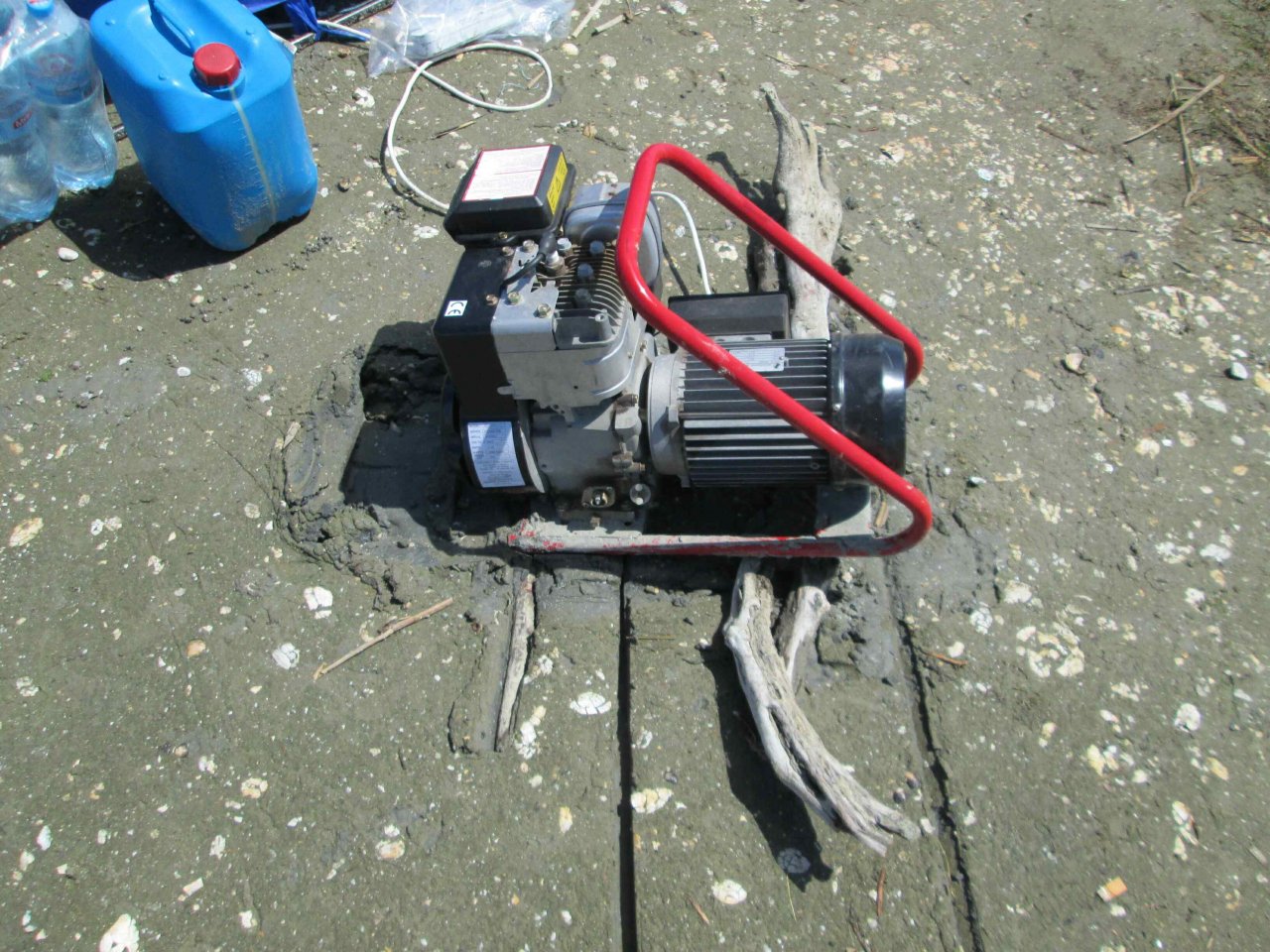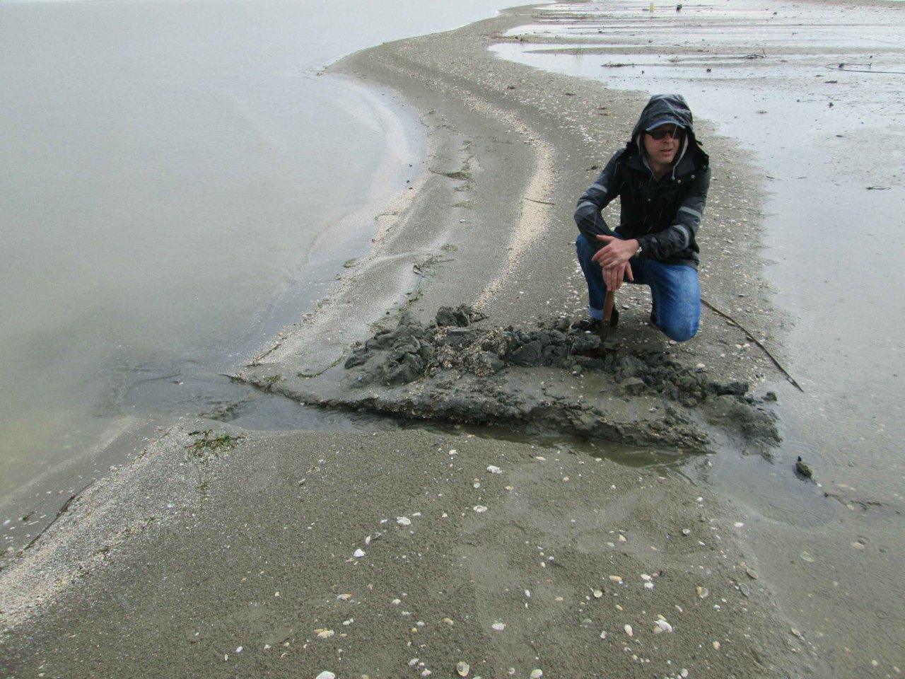 Сам остров – это песчаная коса и вся поверхность, пропитанная водой, становится явно некомфортной. Но, неудобства лишь нарастают: при запуске генератора обнаруживаем, что он медленно начинает проседать в песок от собственной вибрации. Вопрос решаем просто: находим пару прибившихся к острову веток от деревьев и переставляем генератор на них. Попытка установить стол для аппаратуры и стулья тоже не проходит. Все ножки сразу же уходят в песок чуть ли не до половины. И здесь выход находим практически сразу: на каждую ножку надеваем большие ракушки-улитки (Черноморские Рапаны). Их на острове много и эффект «на лицо» - уже можно сидеть. Периодически, правда, эти ракушки не выдерживают наш вес и раскалываются, приходится их менять на новые. Их насобирали про запас и держим возле ног.
