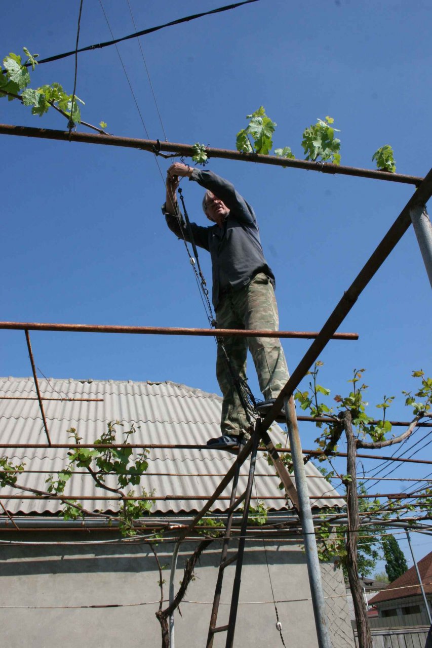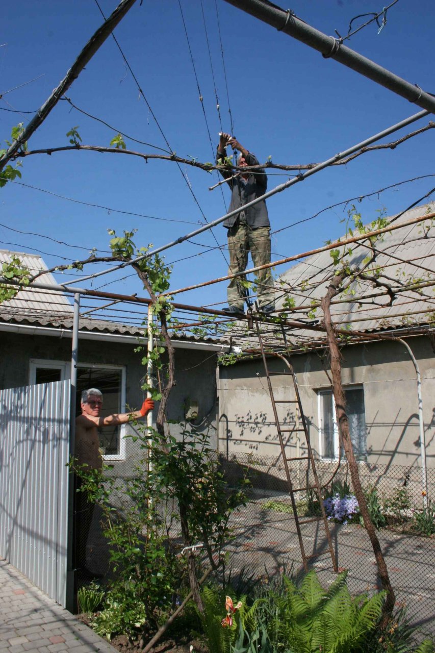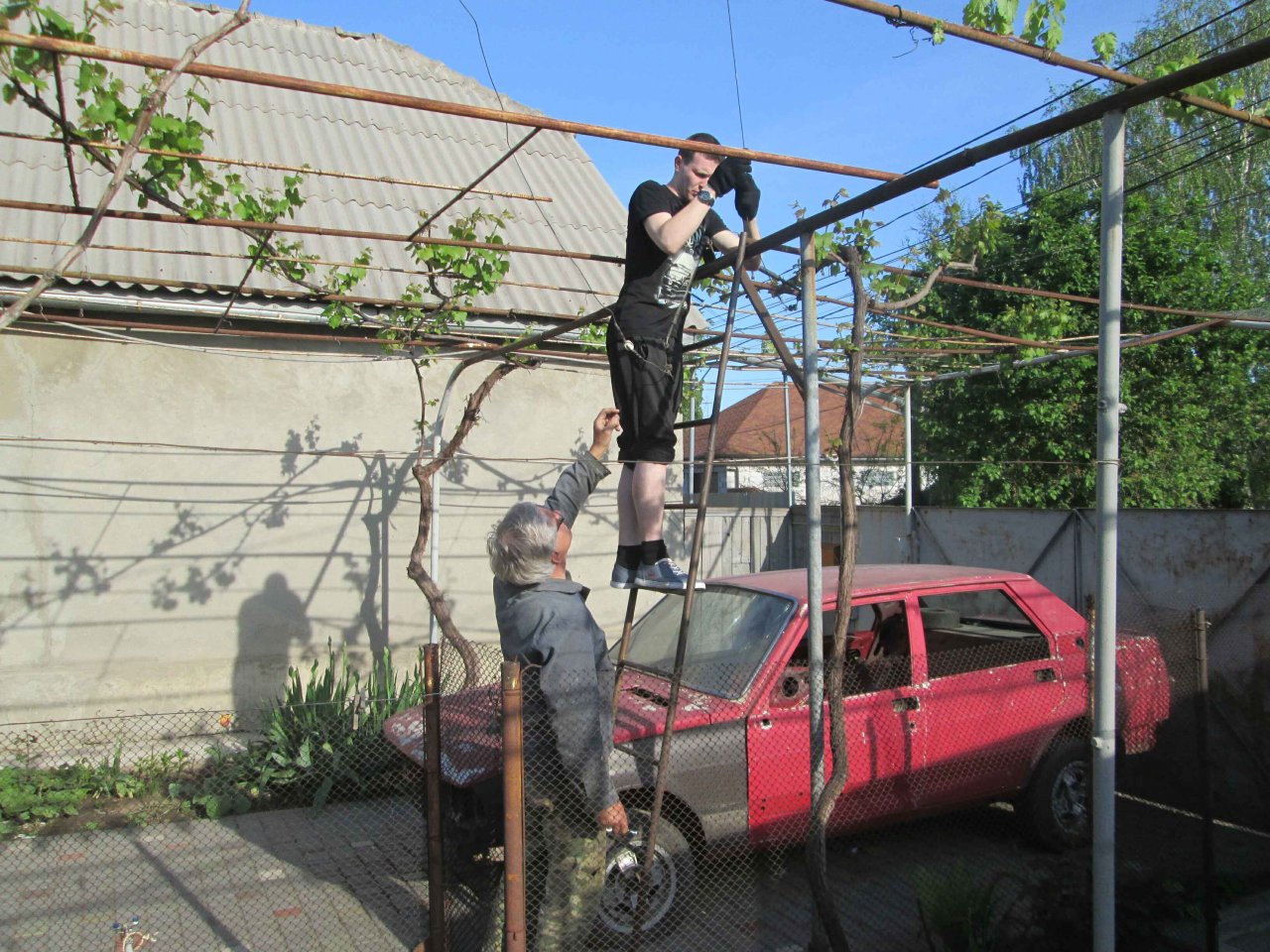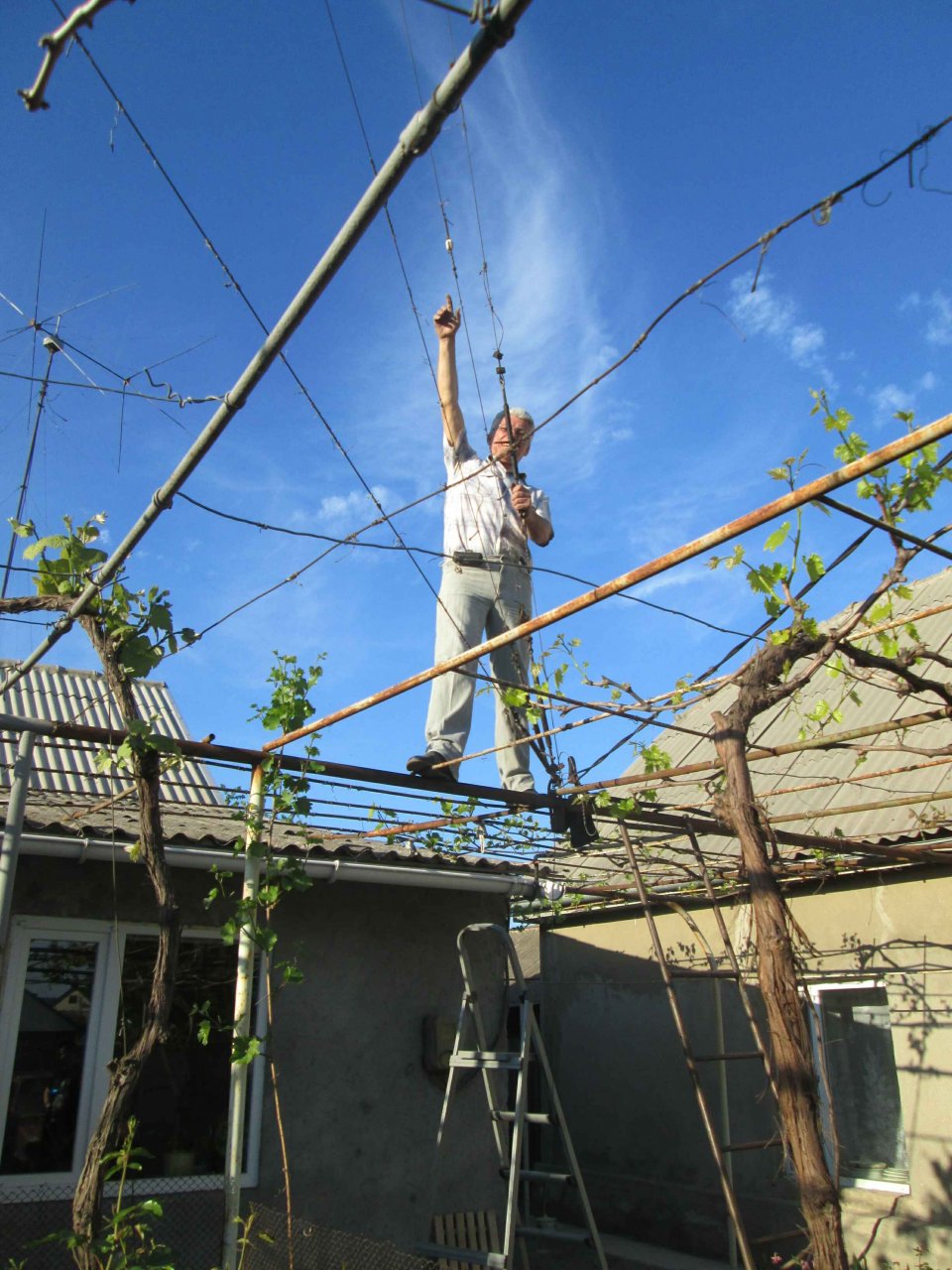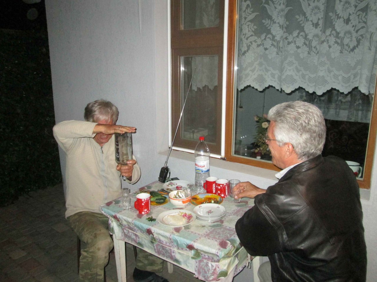 После выдвижения – как положено «обмыли» - что бы стояла! Но – трое из участников подъема сразу уехали. По уважительным причинам – «за рулем» … Поэтому подготовленную «емкость» рассчитанная на всех ( 1000 пф) пришлось «приговорить» втроем… А поскольку «сидели» хорошо – то пришлось найти в «шкапчике» еще нехвативших «на посошок» пФ 150 , хи В общем – утро субботы было сложное … А предстояло еще добавить по метра полтора троса на самый верхний ярус растяжек. И это все – на высоте метров 5. Ткс Александру UR5FAXчто он помог и в этом завершающем этапе. Так же спасибо остальным помощникам, без которых я бы не смог завершить работу …