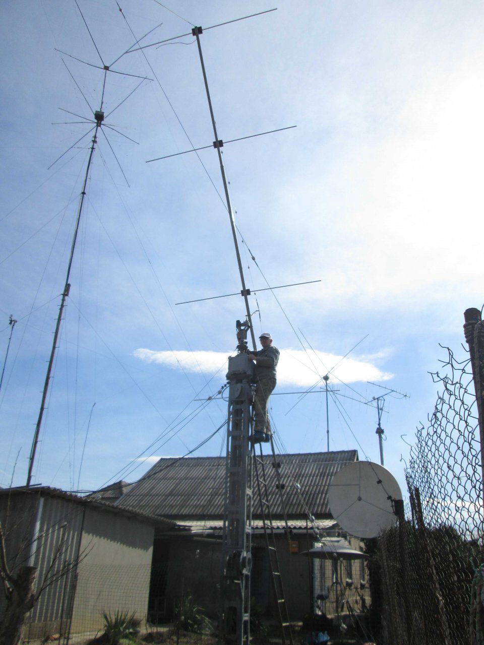 Небольшая подборка фото по хронологии. Для тех кто оправдывает свои затянувшиеся на многие годы планы по установке 7-ми метровой мачты: - основная часть работы была проделана в зимний период! Причем – все работы проделал сам! Хорошо продумал весь процесс сборки антенны. Благодаря узлу элевации траверсу можно было периодически переворачивать вверх-вниз и добираться к любой ее части с 3-х метровой стремянки …