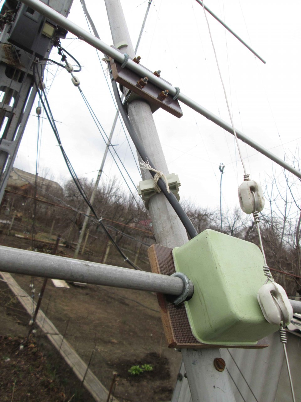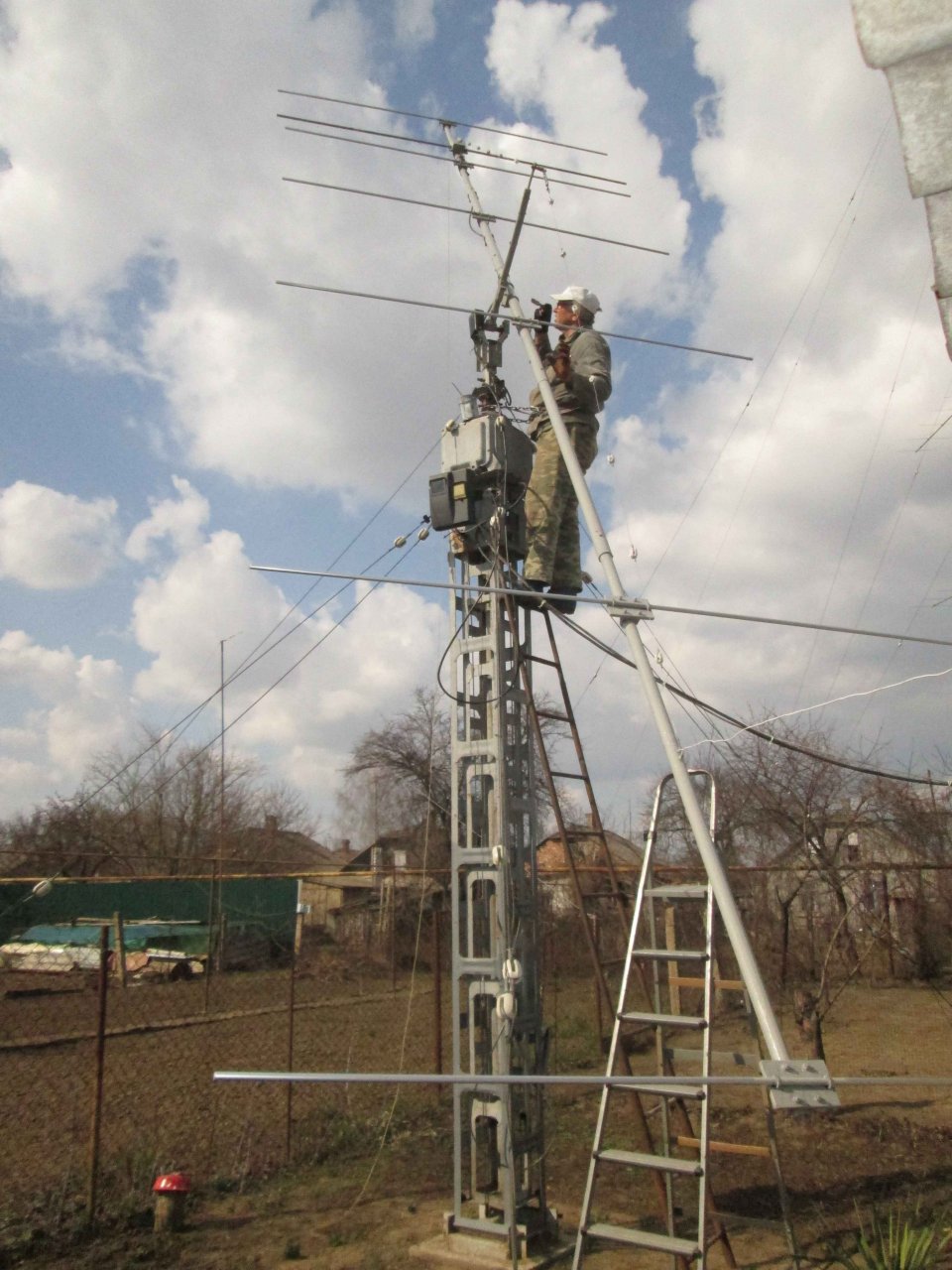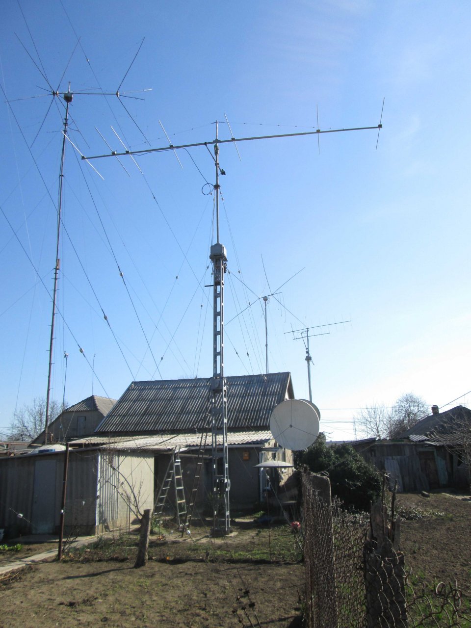 После долгих раздумий выбор пал на 7эл YU7EF, с траверсой 9м. В оставшемся пространстве моего приусадебного участка даже эту антенну впихнуть получалось с трудом. Тьма антенн и растяжек вокруг заставили все нюансы продумывать до сантиметров …