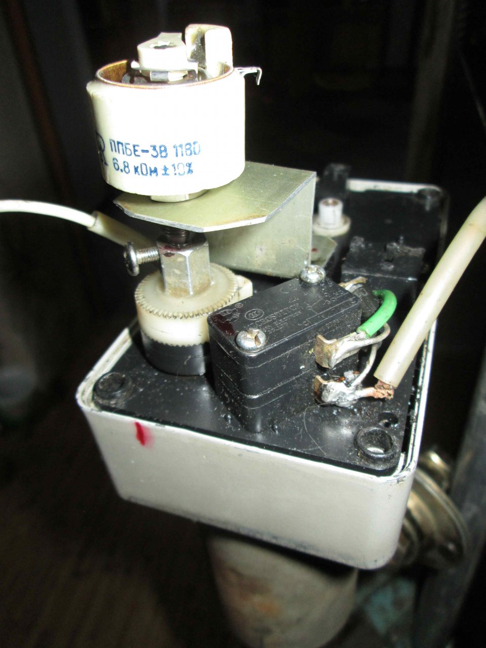 Для элевации использовал актюатор 18 дюймом. В нем удалось пристроить резистор для индикации угла элевации. Такой вариант применил впервые и теперь подумываю – не переделать ли и остальные актюаторы ?! Такие же актюаторы использую на ЕМЕ и SAT антеннах. Фото надеюсь объяснят саму идею…Использование резистора намного упрощает индикацию угла элевации. В заводском варианте, напомню, задействован датчик импульсов от геркона и вращающегося магнитика. А это неизбежно приводит к использованию цифрового позиционера … Здесь же вопрос индикации решается элементарно просто – с помощью китайского мультиметра считывающего показания этого резистора.