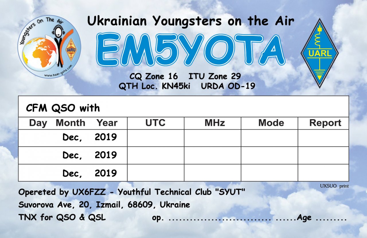 В этом году Специальных Позывных Сигналов с суффиксом “YOTA” во всем Мире набралось 48. Из них Украину представляли – EM5YOTA– Измаильская СЮТ - UX6FZZ и EM6YOTA – г. Харьков.