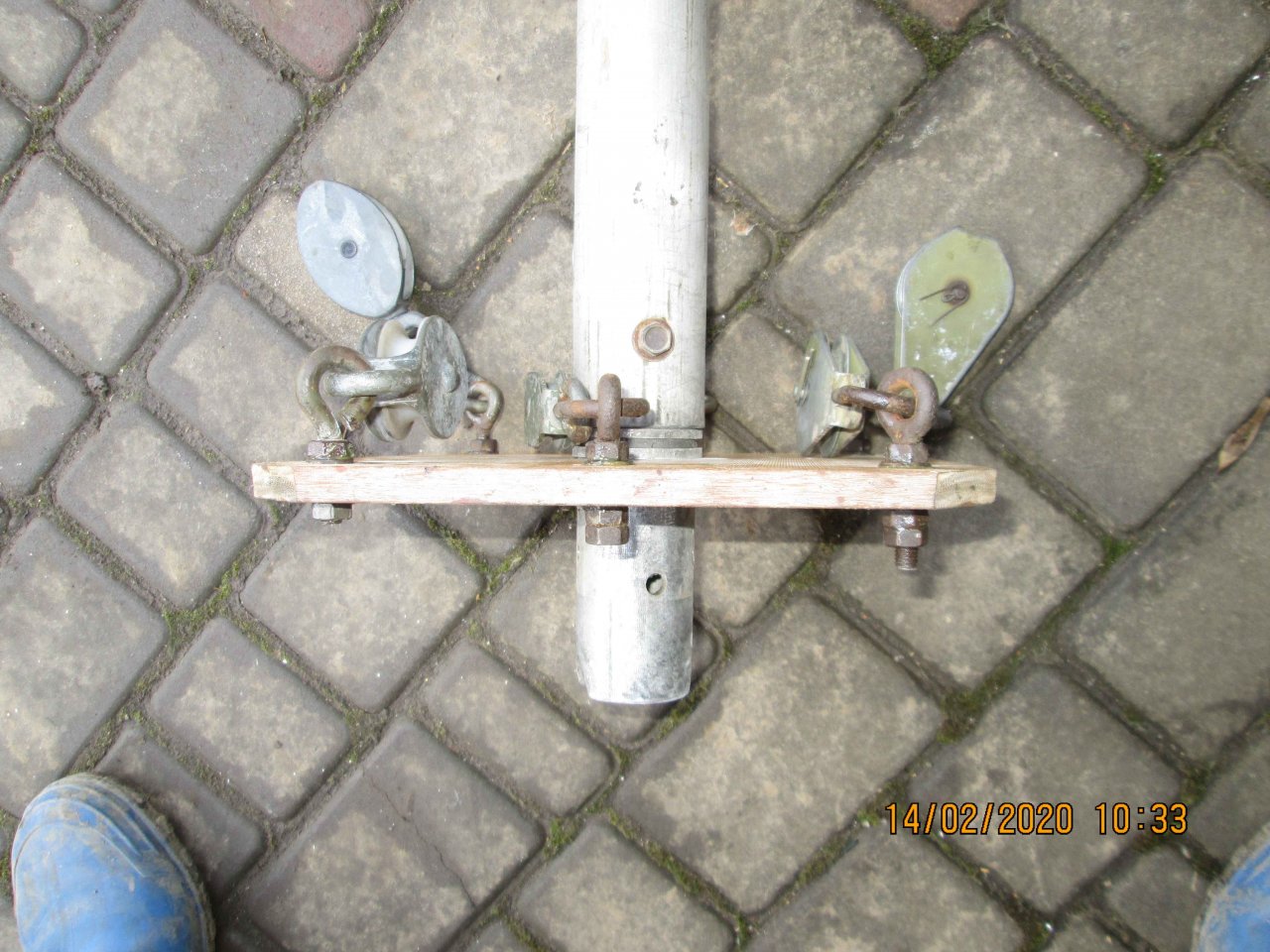 Отдельное спасибо помощниками – UR5FD– UR5FJN– US5FDN и моему воспитаннику Руслану и коллеге по СЮТ – Игорю. Решили телескоп подымать с вставленной 8-и метровой верхушкой. До этого обычно его поднимали на шарнире. А верхушку приходилось втыкать уже на высоте 5 м.