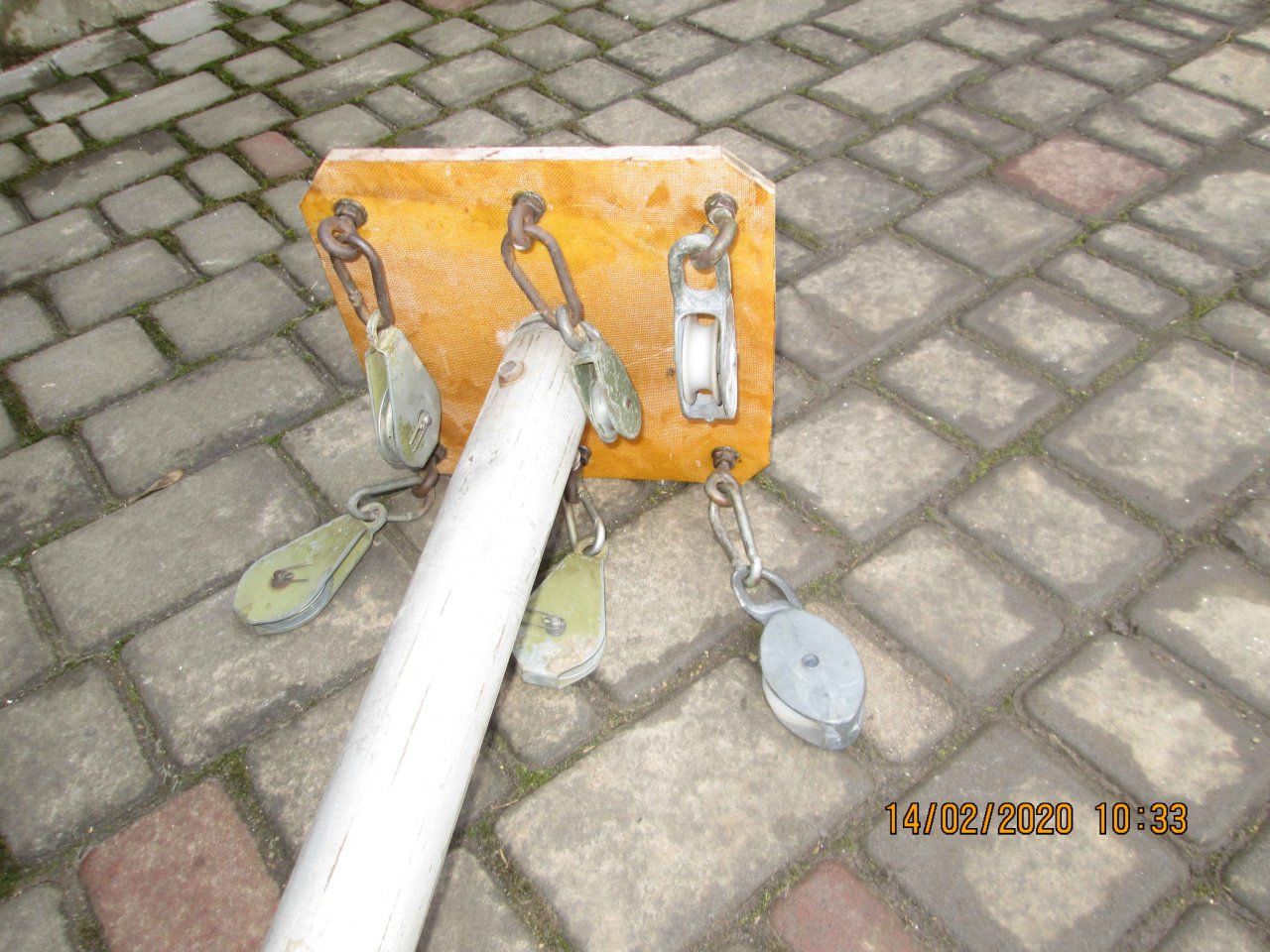 Заодно решил укрепить верхушку – 5 метров до площадки с блочками – расчалил леской 1,5 мм. Расчалить чем-то более прочным не получится – при первом же обледенении эта верхушка не выдержит веса гололеда. А их длина не получается менее 35-40 м.