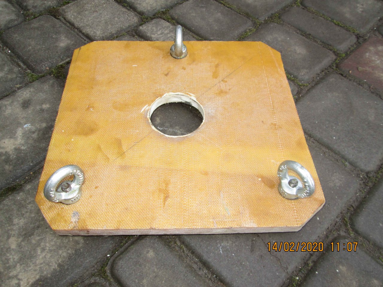 Отдельное спасибо Игорю UT7QFза подарок - кусок 12 мм стеклотекстолита. Его хватило на две верхних площадки – для блочков и верхнего – 20 м яруса телескопа. На остальных ярусахпониже использовал площадки из 10мм текстолита. Но в корне переделал места их крепления на телескопе – на обоймах для сальников. До этого площадки одевались непосредственно на сами трубы. При этом – получалось, что расстояния задвижения труб не хватало для срабатывания защелок. Из-за этого телескоп пришлось слаживать снизу – отщелкивая сами защелки через снятые крышки.