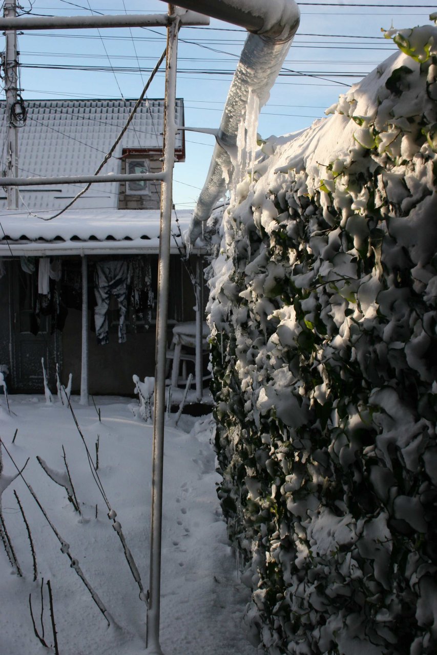 Спас сосед – мой воспитанник Сергей. Протянул к нему кабель еще в прошлый Блэк-аут . И его 8 Квт генератор очень сильно выручил. Холодильник работал уже от генератора и аккумуляторы заряжал тоже от него. Солнечные панели накрыло толстым слоем снега-льда и от них отдачи не было. Это было особенно ценно когда в итоге – электроэнергию восстановили аж к вечеру 4-х суток! В городе повалило очень много деревьев и оборвало много линий и электро опор. Естественно электрики не успевали это все восстанавливать в кратчайшие сроки…
