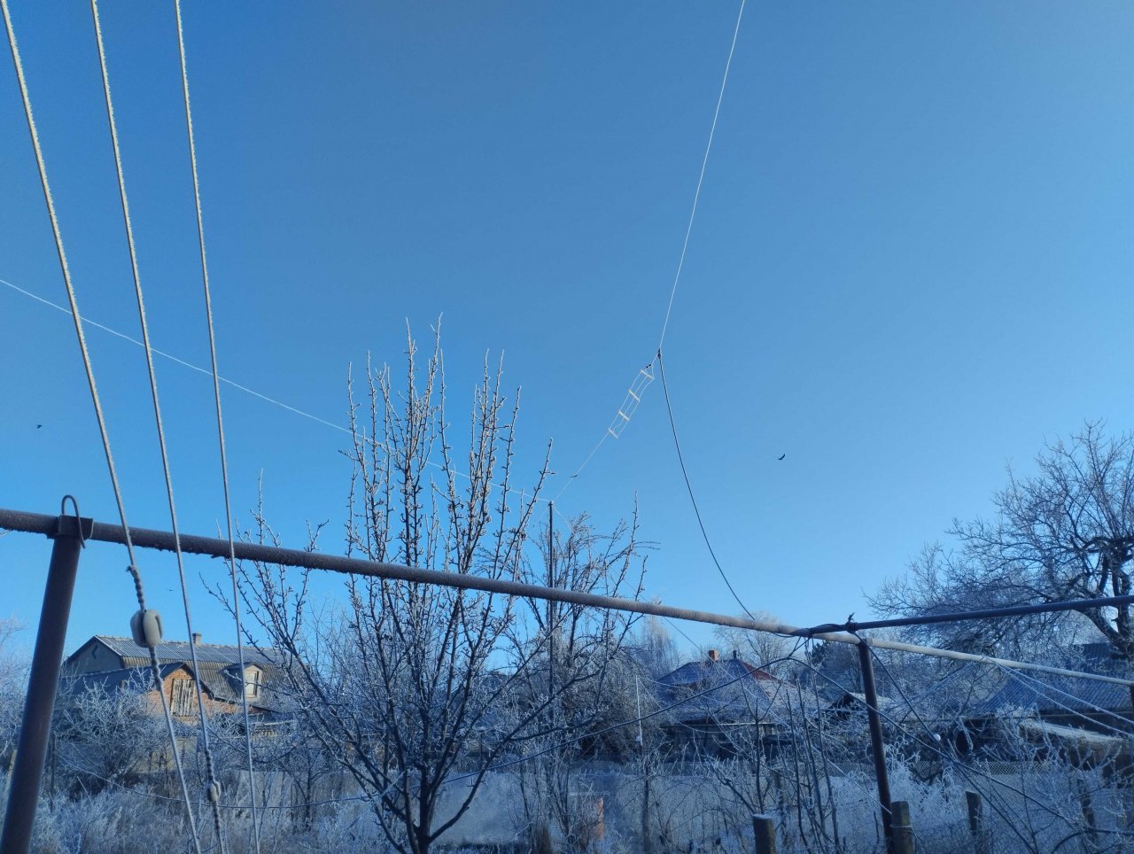Сегодняшнее утро побудило черкнуть эту небольшую статью. Очень уж красиво смотрятся все антенны при ярком солнце и - налипшем инии. Это редкий природный феномен – ночной туман и приличный для наших краев мороз – 7 сделали свое дело …