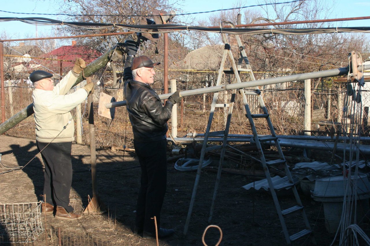 Немного фото. По хронологии восстановления. И – сегодняшних на которых намного понятнее – сколько всего расчалок и тросов на моем небольшом приусадебном участке …