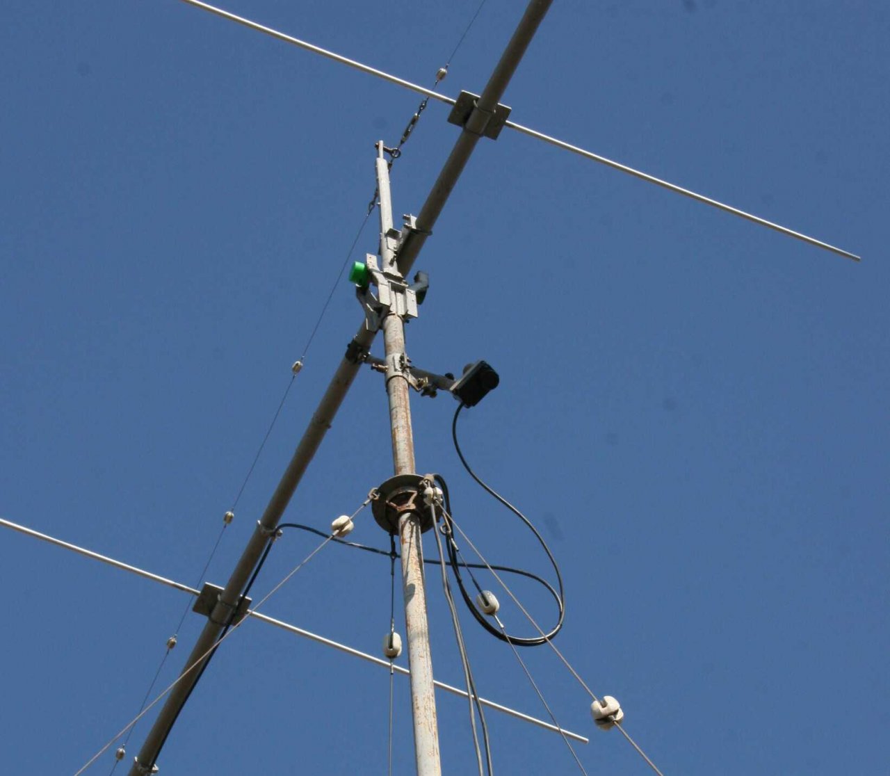 9-ть квадратов, установленные на этой же мачте в 2015 году и переделанной под элевацию в конце 2018 года, был вынужден демонтировать из-за сильной расстройки после добавления узла элевации. И –невозможности поднимать выше 30 градусов – рамки упирались в мачту!