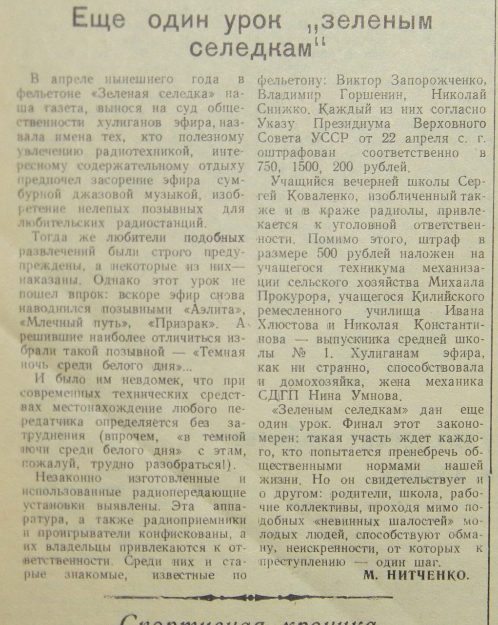 Хотелось бы сказать несколько слов и о тех спортсменах – радиолюбителях, которые представляли Измаил в соревнованиях по скоростному приему-передаче радиограмм.