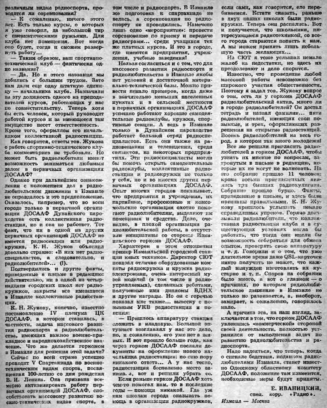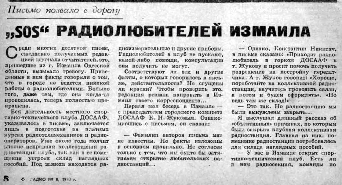 Именно эту статью в журнале "Радио" за 1970 год можно считать точкой отсчета создания Измаильскго Радио Клуба.